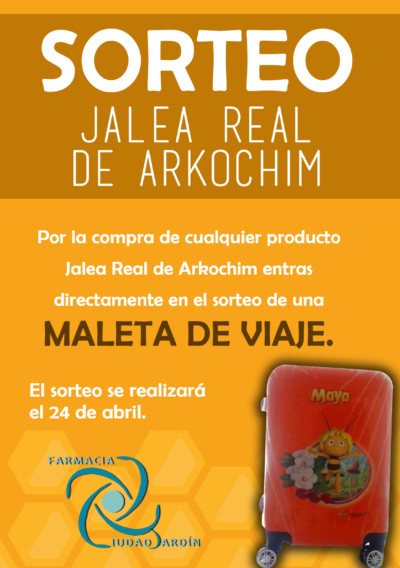 ¿Quieres ganar una maleta de viaje de la abeja Maya? Por la compra de cualquier producto Jalea Real de Arkochim entrarás directamente en el sorteo para conseguir esta magnífica maleta. Tus viajes serán, sin duda, mucho más divertidos. El sorteo se realizará el 24 de abril.  ¡Participa! ¡Mucha suerte! Compartir